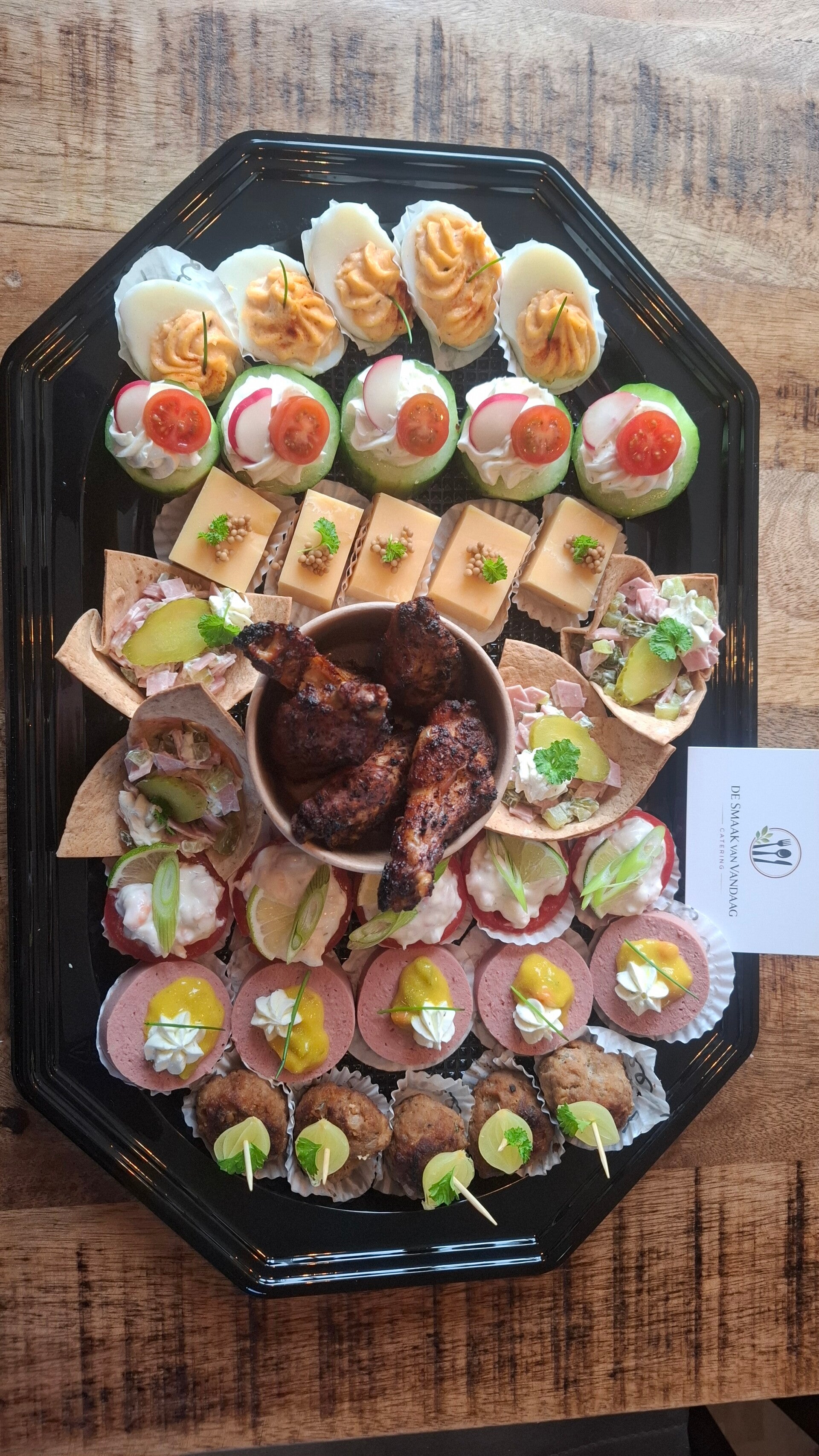Om onze hapjes met liefde en aandacht te bereiden vragen we je wel om deze minimaal 48 uur van te voren te bestellen.